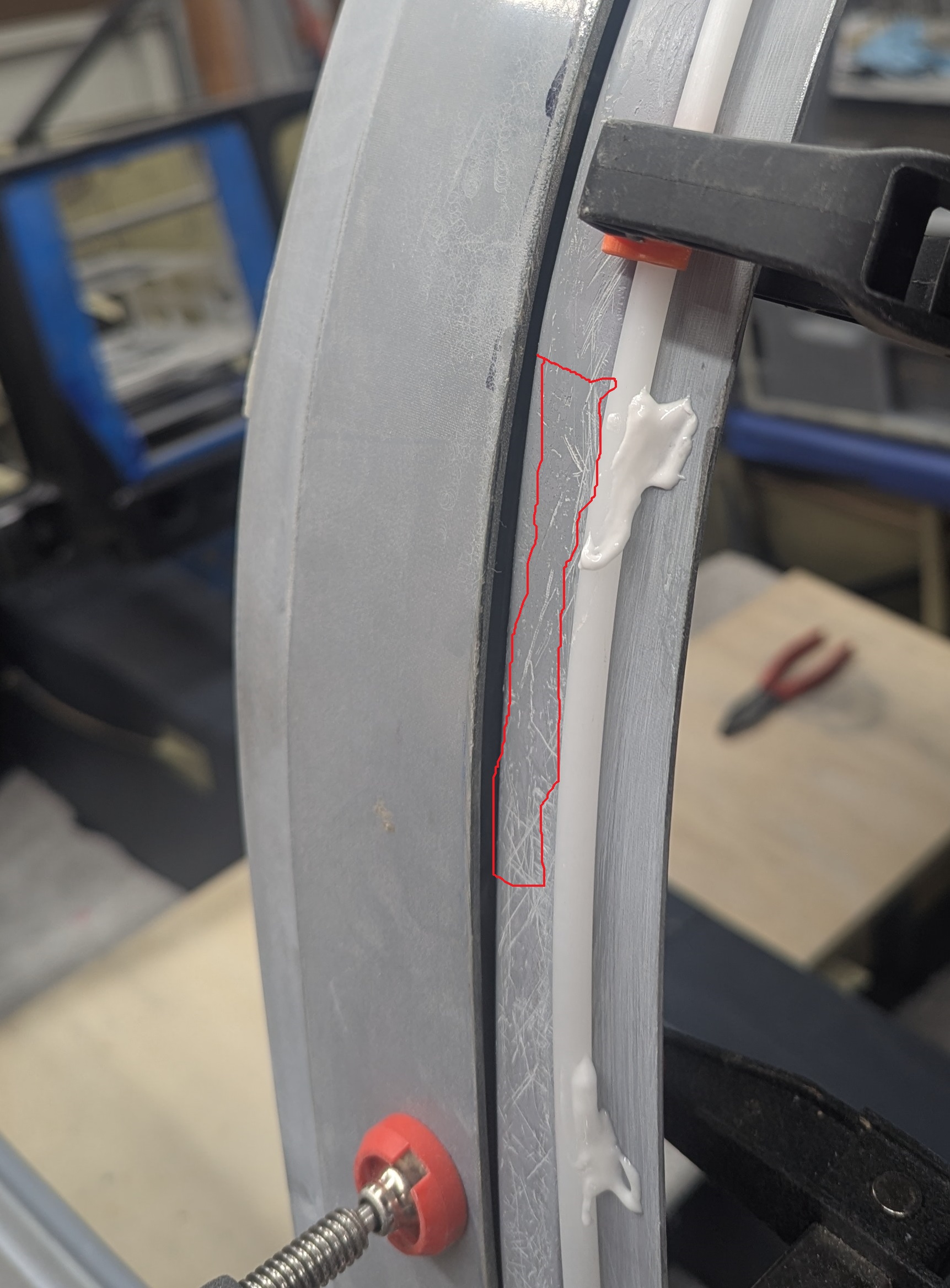 Red box indicates flat spot in RV-10 cabin top mold that causes the door to not sit flush.