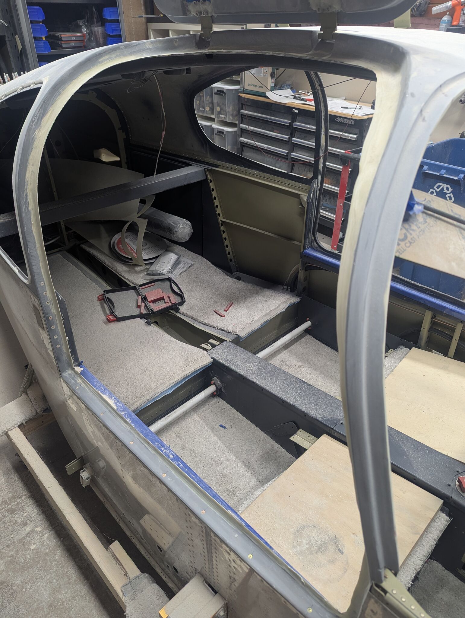 Door jam flange sanded parallel to door ready for installation of epoxy-filled sacrificial McMaster Carr door seal.