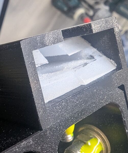 Front edge of plastic inserts cut to a 45-degree angle to facilitate easier removal of seats without removing flap cover.