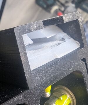 Front edge of plastic inserts cut to a 45-degree angle to facilitate easier removal of seats without removing flap cover.
