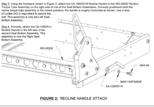 • Step 5: again, do not mirror image; CA-10003F-R (obviously the right side of the seat) will have the longer MS27039-4-20 bolt for both seats.