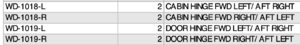- The plans provide instructions for fitting the hinges to the LHS door, and Step 3 provides the positions for the WD-1019-L and WD-1019-R hinges. The plans then instruct the builder to 'repeat this step for the right side door hinges'. Note: the WD-1019-L hinge must be placed Forward side, and the WD-1019-R hinge must be placed Aft side of the doors, not Left and Right as the part naming would suggest.
