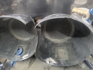 - Add 2-3 layers of fiberglass cloth and epoxy to the inside of each wheel pant fully covering the desired door location by several inches on each side.